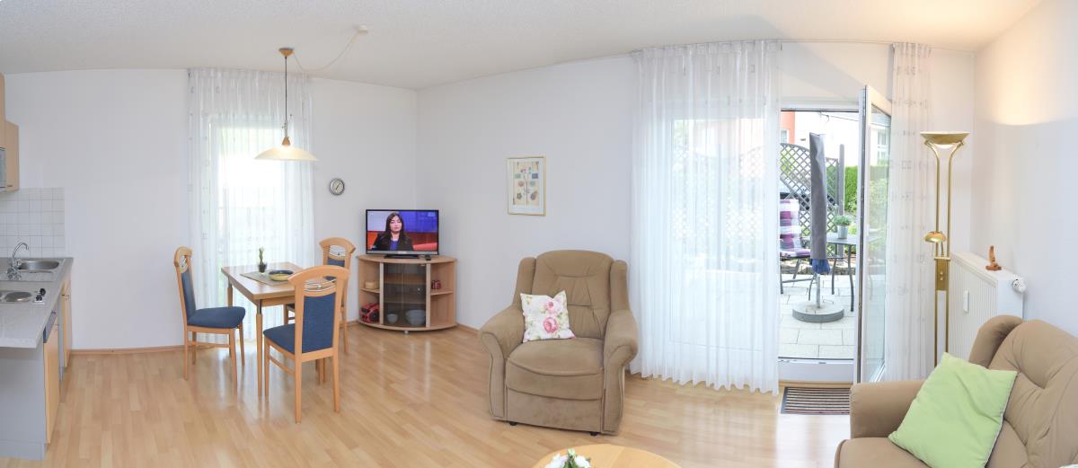 Die Nichtraucherwhg. (mit Rauchmöglichkeit auf dem Balkon) befindet sich im 1 OG und ist auch mit dem Aufzug erreichbar.